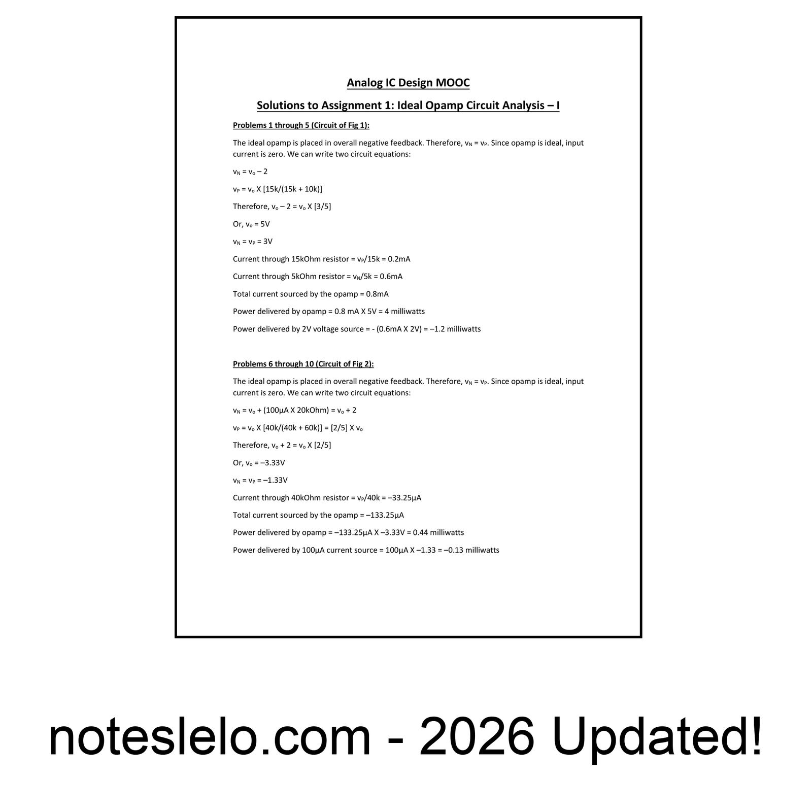 Specifically designed for the NPTEL course Analog IC Design by Prof. Aniruddhan S Prof. Nagendra Krishnapura, IIT Madras. Contains 120 week-wise unique questions that have been carefully compiled from the weekly quiz assignments of previous editions of the course. Download the PDFs immediately after purchase from the order completion mail or from the “Downloads” section of your profile!