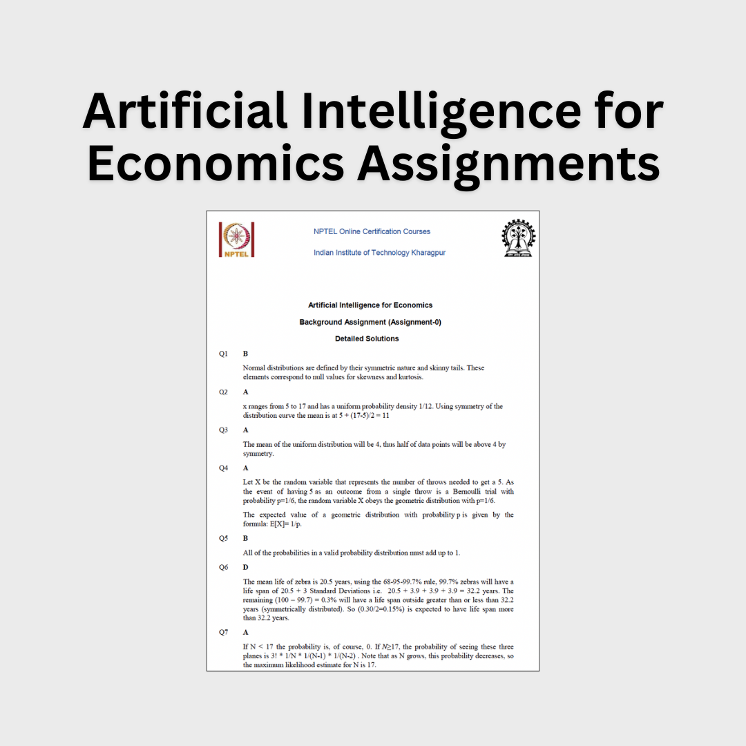 Specifically designed for the NPTEL course Artificial Intelligence for Economics by Prof. Sridhar Iyer Prof. Adway Mitra, Prof. Dripto Bakshi, Prof. Palash Dey (IIT Kharagpur). Contains 80 week-wise unique questions (each set) that have been carefully compiled from the weekly quiz assignments of previous editions of the course.