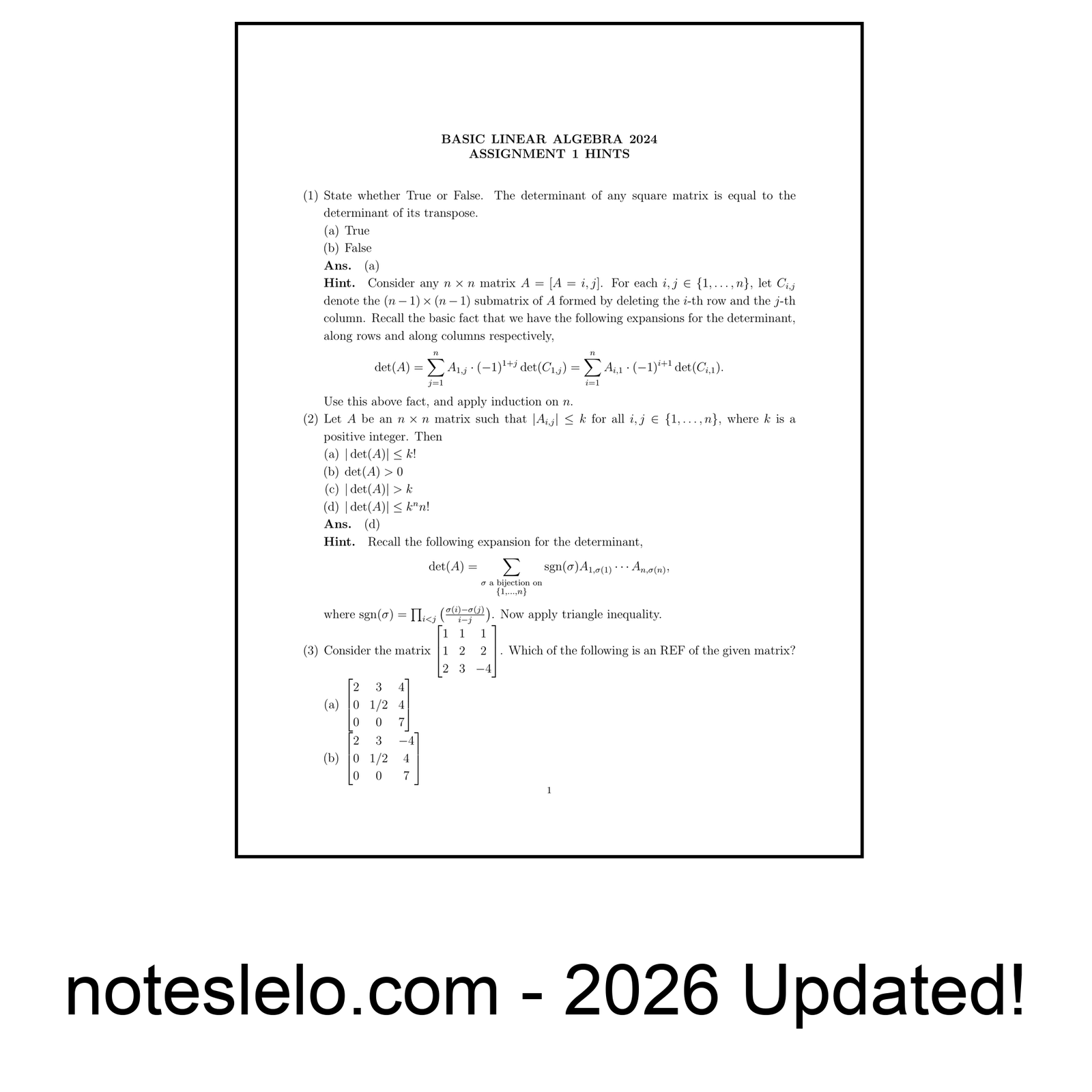 Specifically designed for the NPTEL course Basic Linear Algebra by Prof. I.K.Rana, IIT Bombay. Contains 80 week-wise unique questions that have been carefully compiled from the weekly quiz assignments of previous editions of the course. Download the PDFs immediately after purchase from the order completion mail or from the “Downloads” section of your profile!