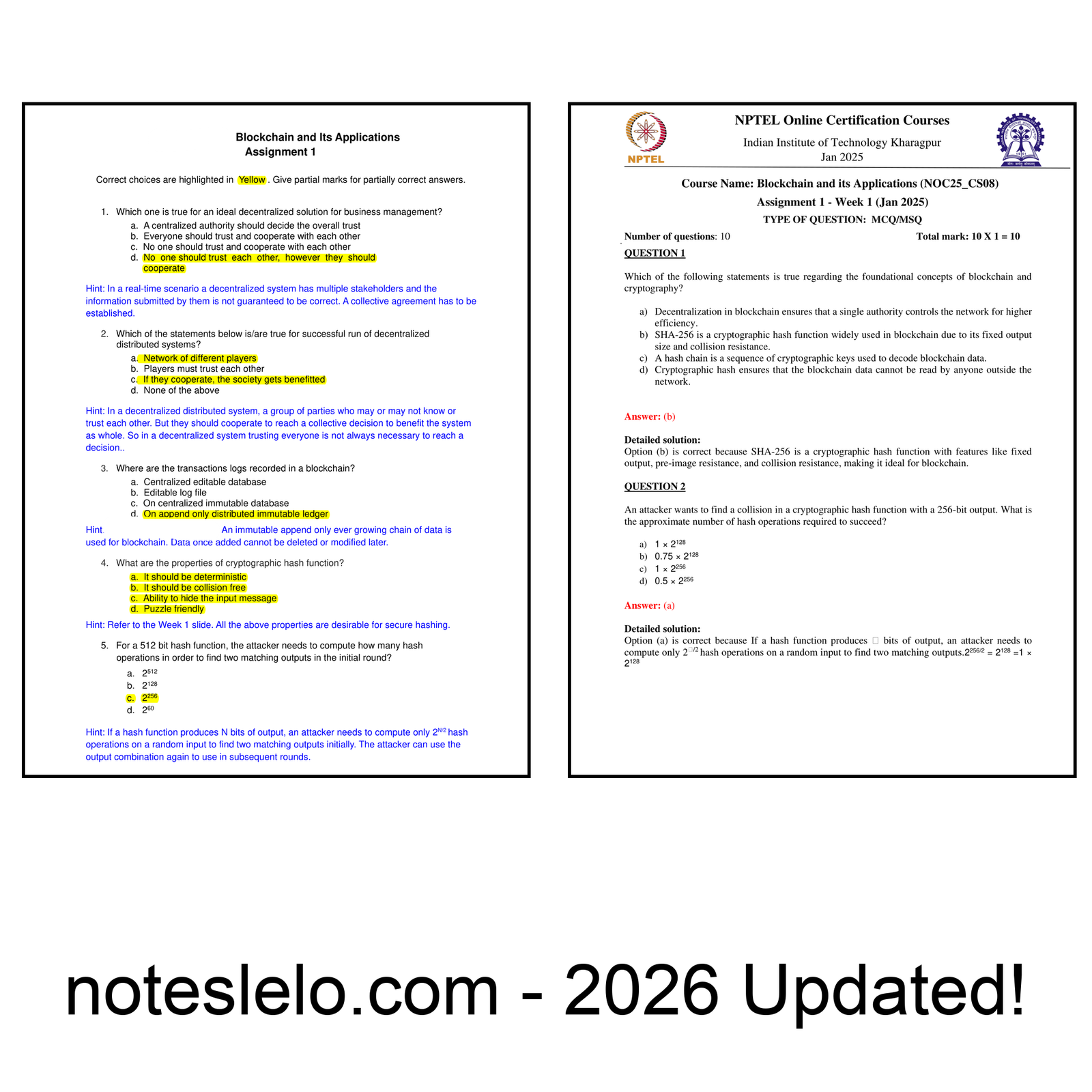 Blockchain and its Applications NPTEL Question Bank