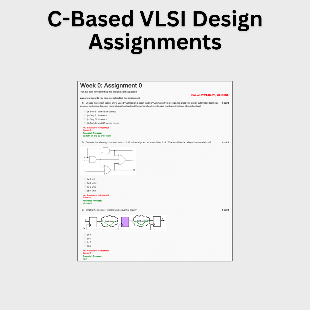 Specifically designed for the NPTEL course C-Based VLSI Design by Prof. Chandan Karfa (IIT Guwahati). Contains 120 week-wise unique questions (each set) that have been carefully compiled from the weekly quiz assignments of previous editions of the course.