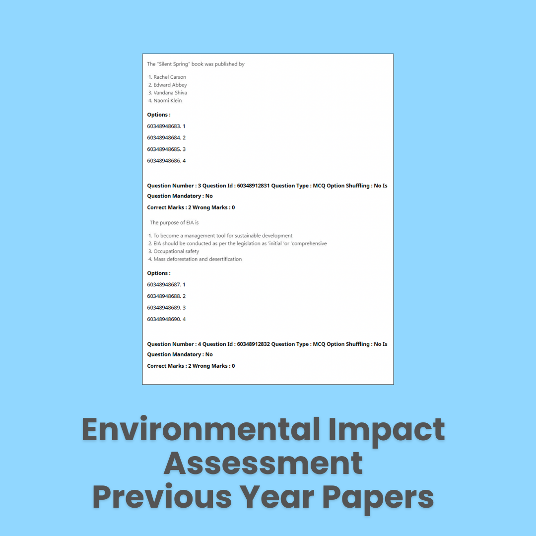 Specifically curated for the NPTEL course Environmental Impact Assessment By Prof. Harshit Sosan Lakra (IIT Roorkee). Contains actual previous year papers that came in the main exam, crucial for revision and understanding for YOUR main examination.