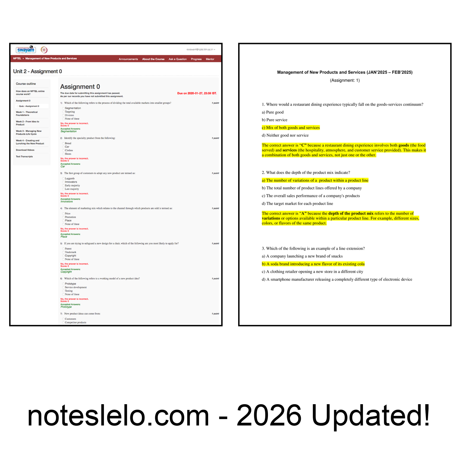 Specifically designed for the NPTEL course Management of New Products and Services by Prof. Jayanta Chatterjee, IIT Kanpur. Contains 40 week-wise unique questions that have been carefully compiled from the weekly quiz assignments of previous editions of the course. Download the PDFs immediately after purchase from the order completion mail or from the “Downloads” section of your profile!