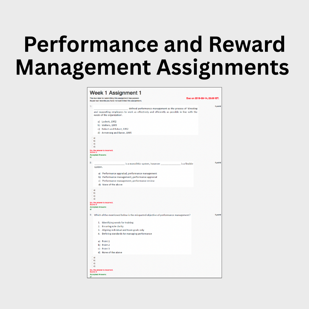 Specifically designed for the NPTEL course Performance and Reward Management by Prof. Susmita Mukhopadhyay (IIT Kharagpur). Contains 120 week-wise unique questions (each set) that have been carefully compiled from the weekly quiz assignments of previous editions of the course.